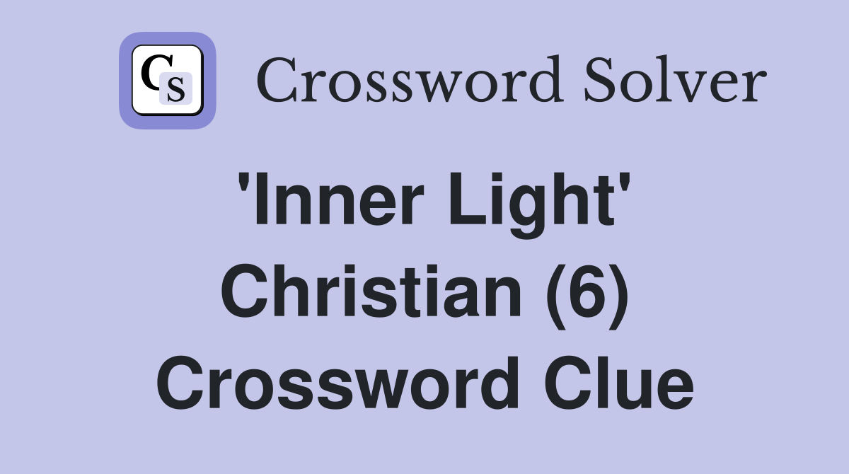 #39 Inner Light #39 Christian (6) Crossword Clue Answers Crossword Solver