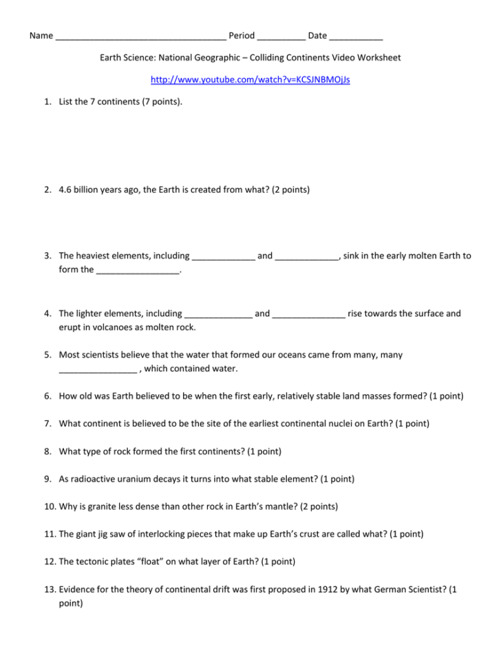 Earth Science National Geographic Colliding Continents Video Worksheet Answers