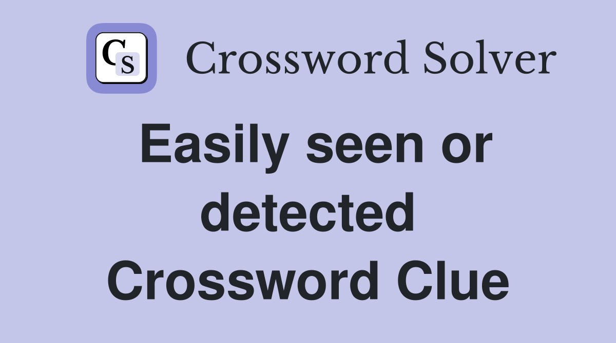 Easily seen or detected Crossword Clue Answers Crossword Solver