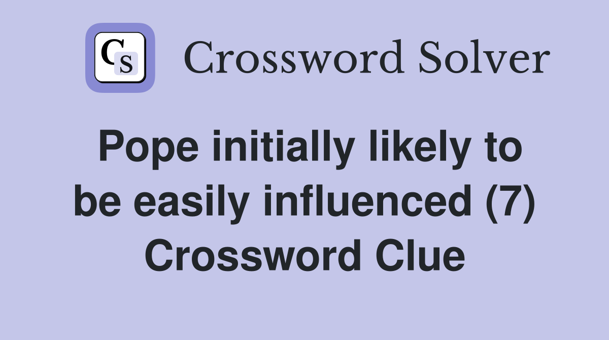 Pope initially likely to be easily influenced (7) Crossword Clue