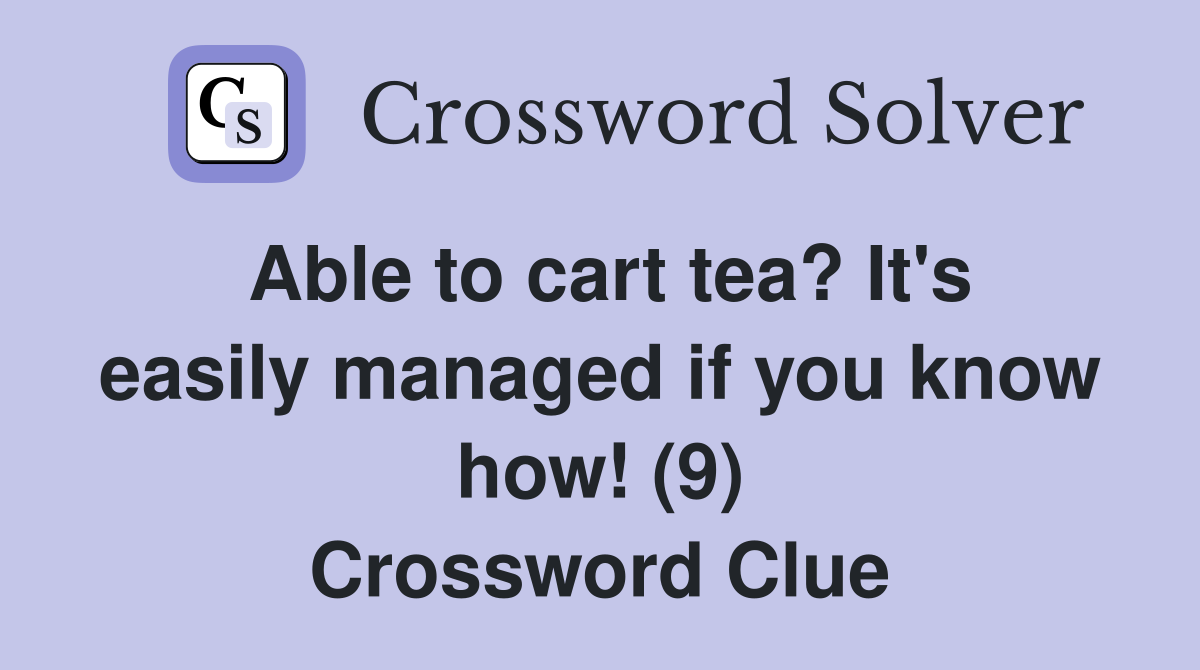 Able to cart tea? It #39 s easily managed if you know how (9) Crossword
