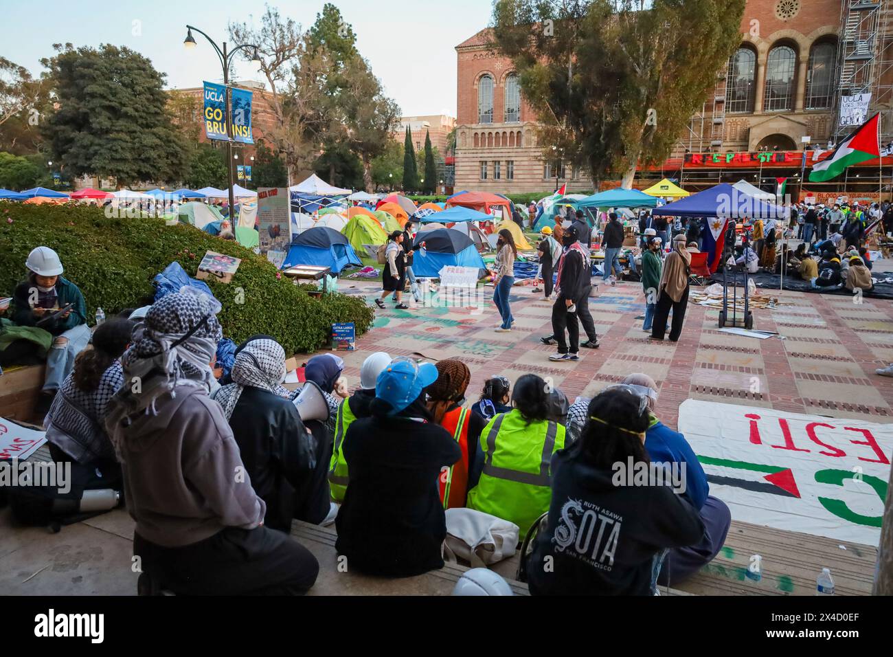 Los Angeles California U S A 1st May 2024 A protestor sits reading