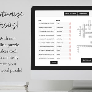 Editable 30th Birthday Party Small Crossword Puzzle Personalized Party