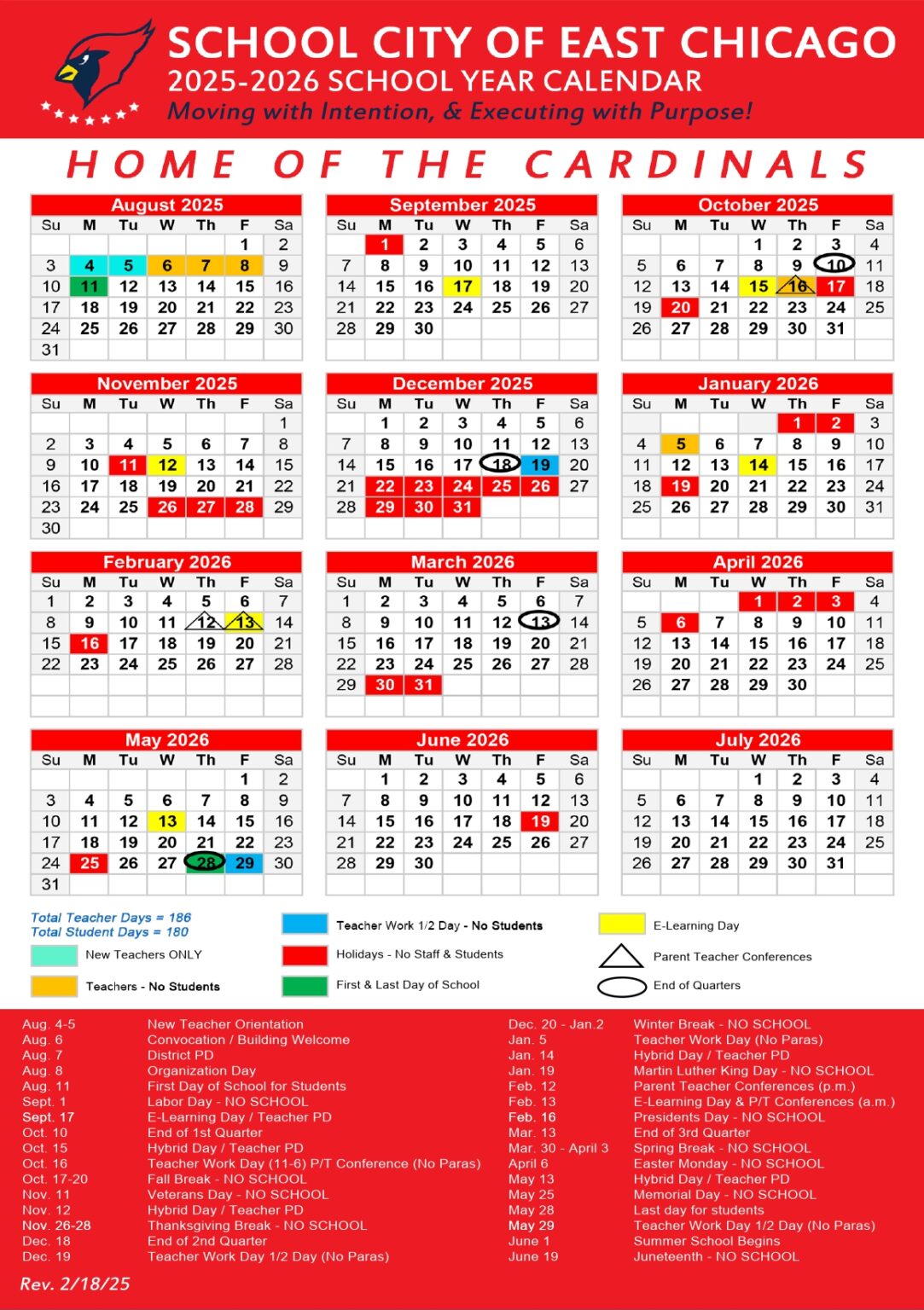 School City of East Chicago Calendar 25 26 Revised PDF EduCounty