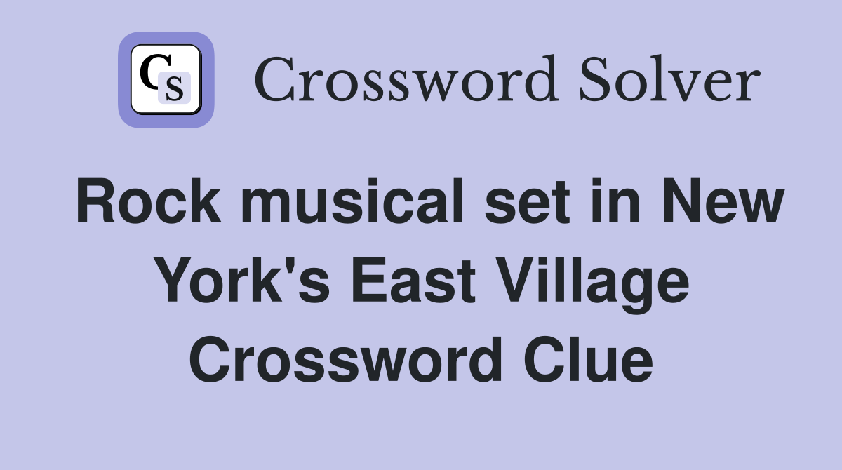 Rock musical set in New York #39 s East Village Crossword Clue Answers