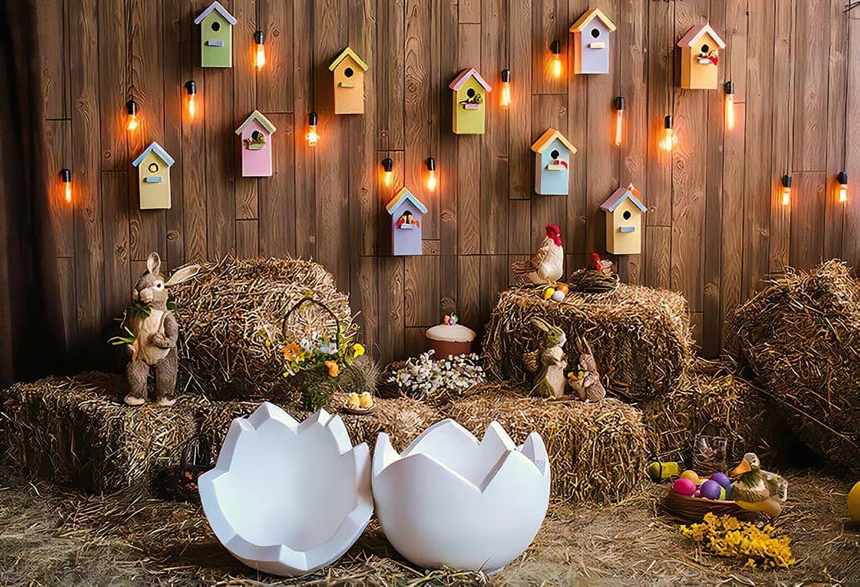 Spring Easter Eggs Bunny Boho Pampas Grass Kids Birthday Portrait r