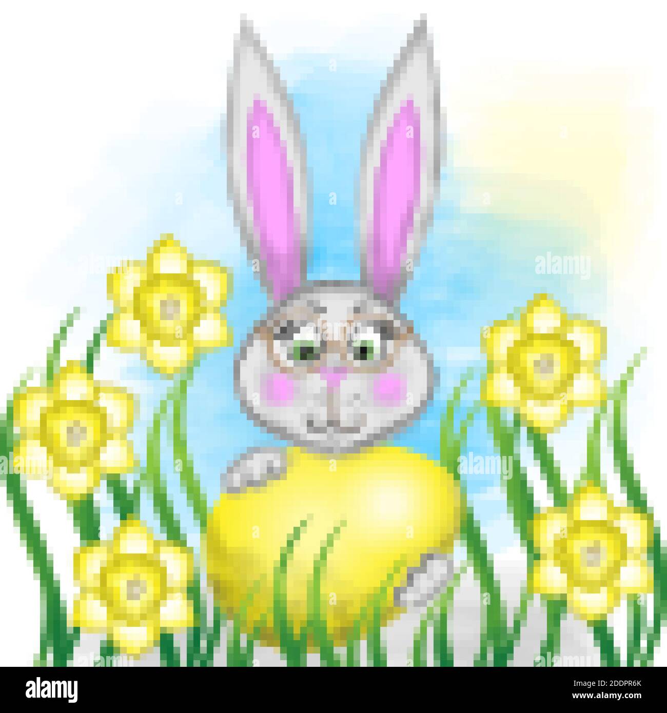 Watercolor Easter Rabbit bunny and egg daffodils Stock Vector Image