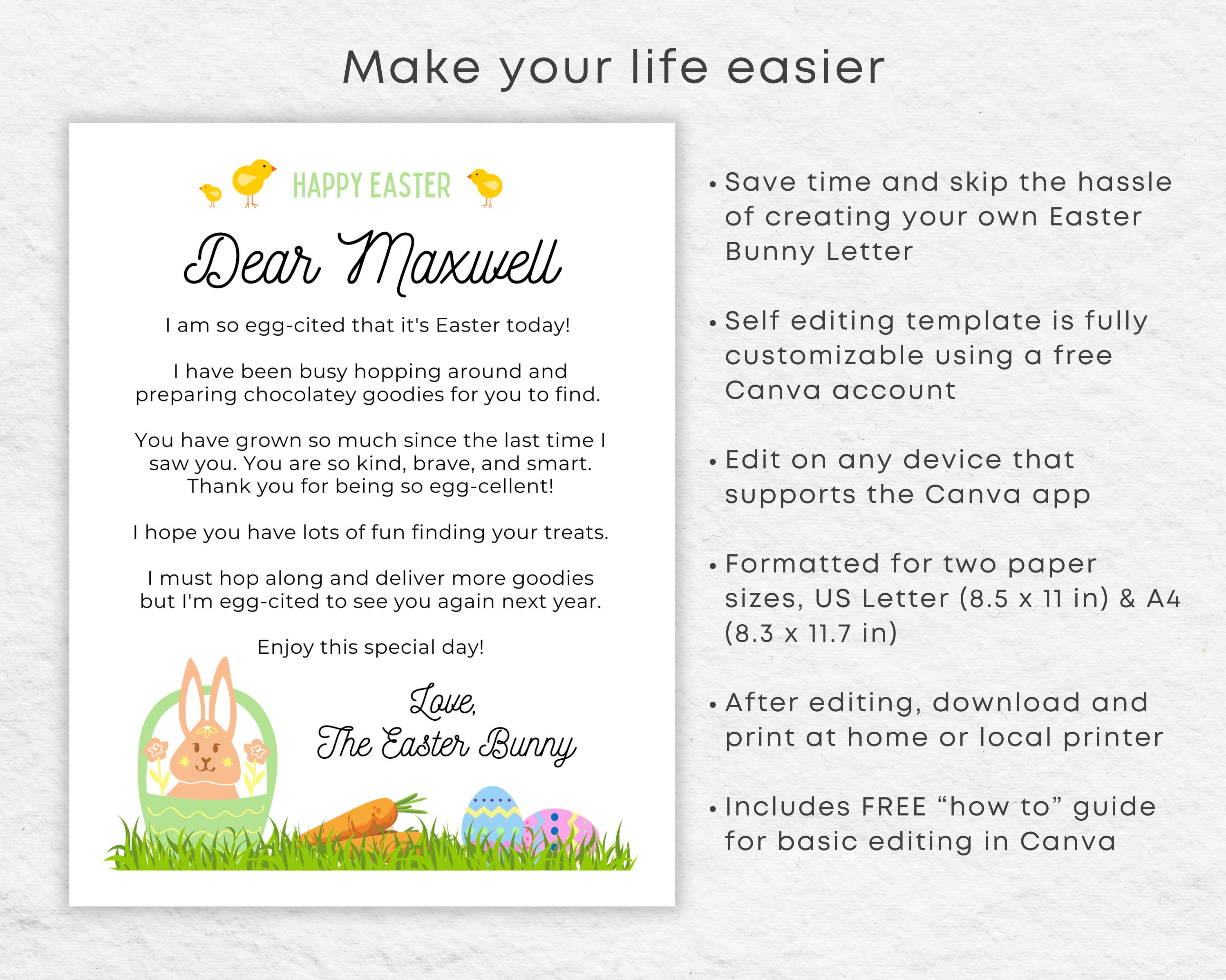 Editable Easter Bunny Letter Template Printable DIY Easter Etsy