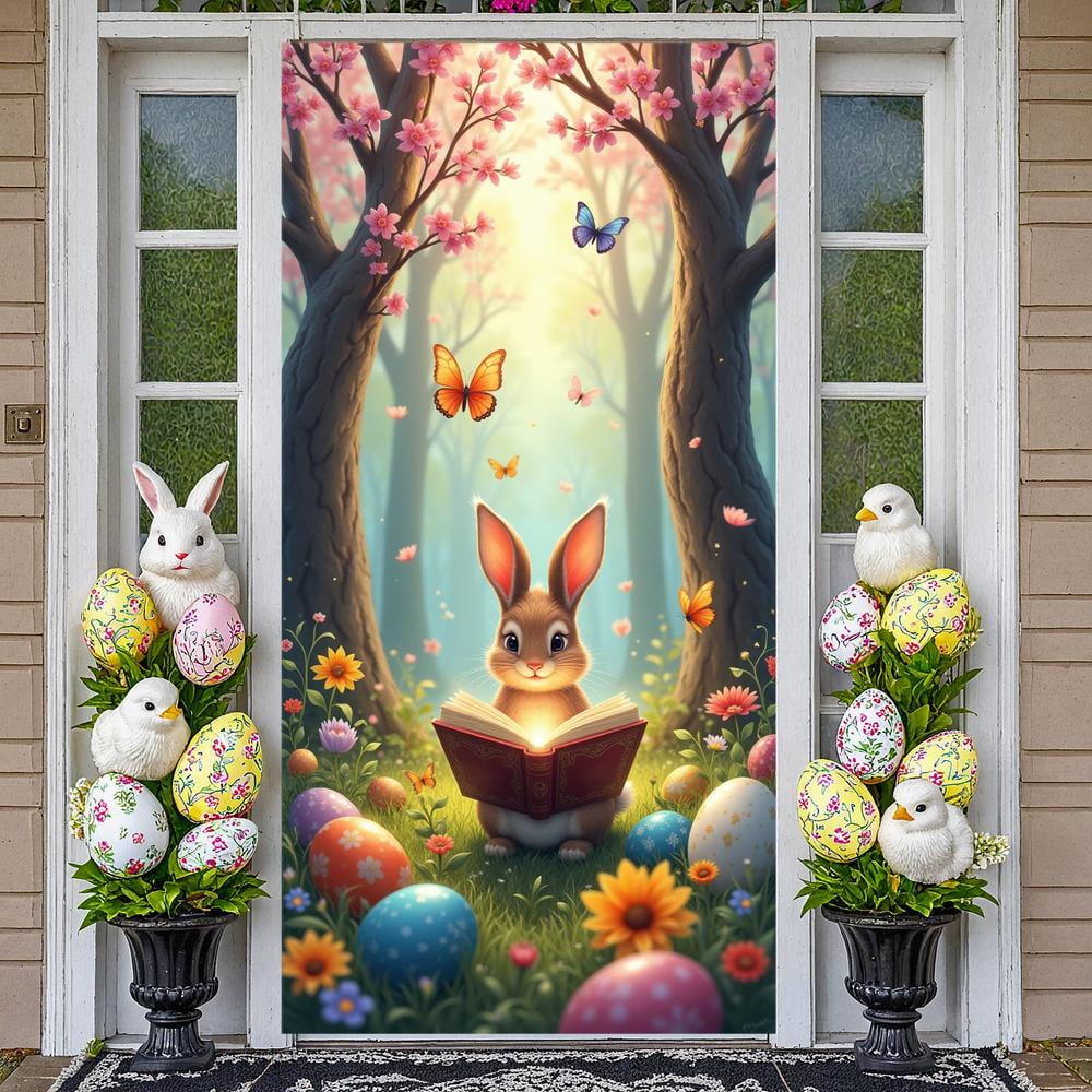Cute Bunny Happy Easter Banner Colorful Eggs Easter Celebration Display