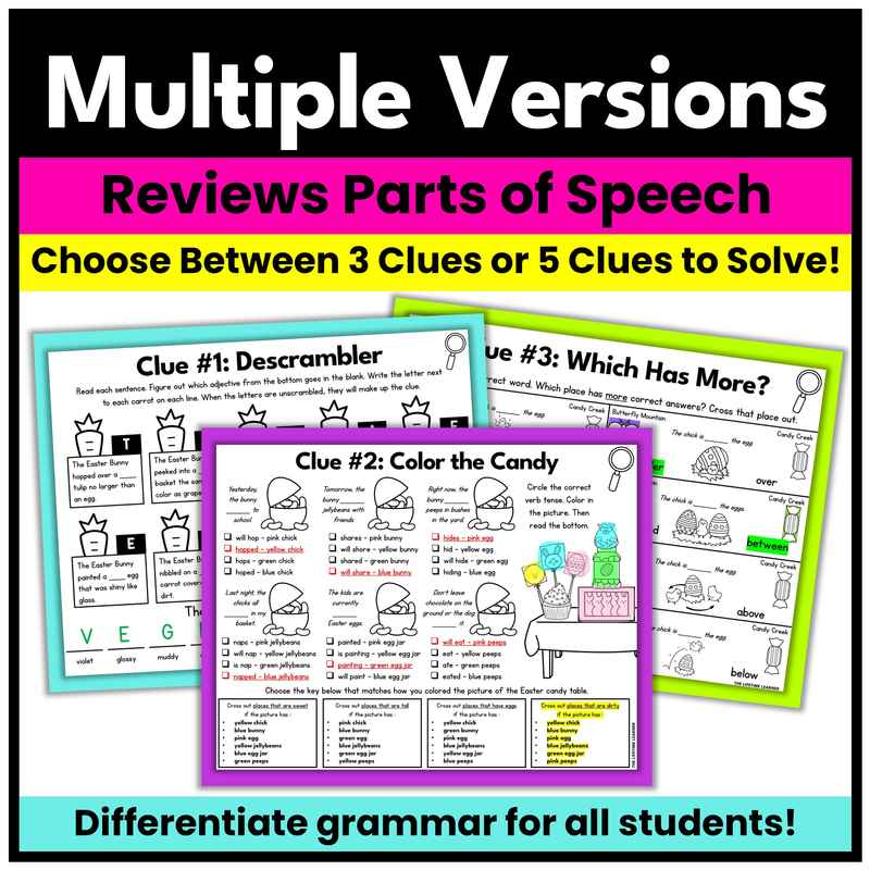 Easter Parts of Speech Mystery Escape Room Activity