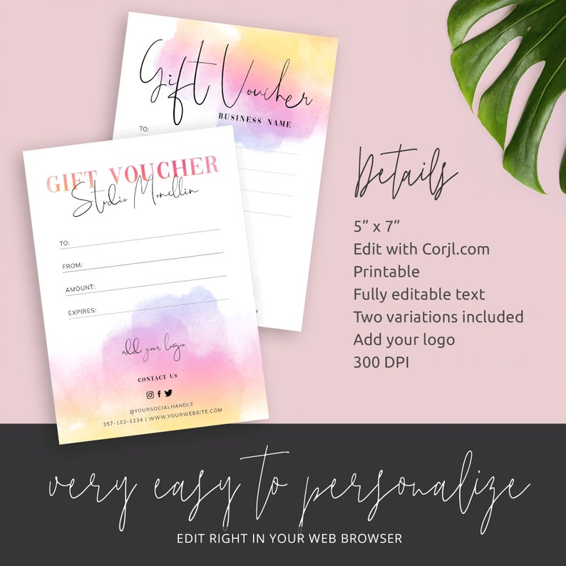 Watercolor Gift Voucher Template Easter Gift Certificate Etsy