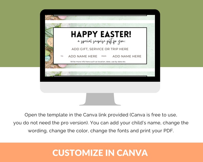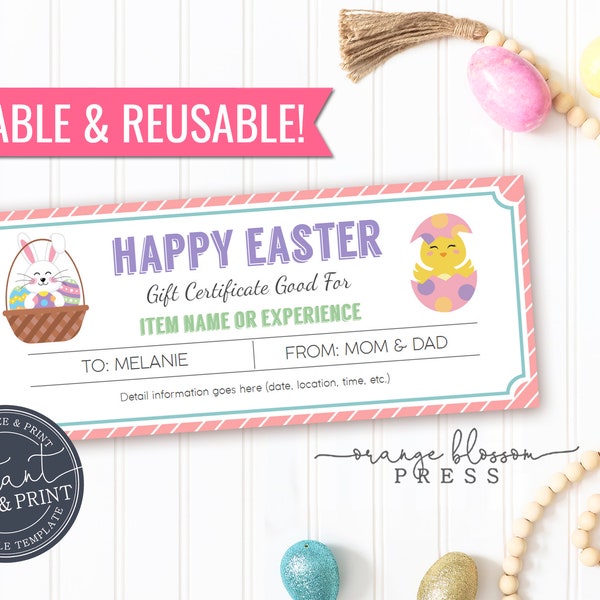 Easter Gift Certificate Editable Digital Template Printable