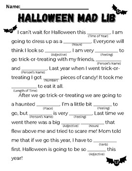 Halloween Mad Libs by Ashleigh Elozory Teachers Pay Teachers