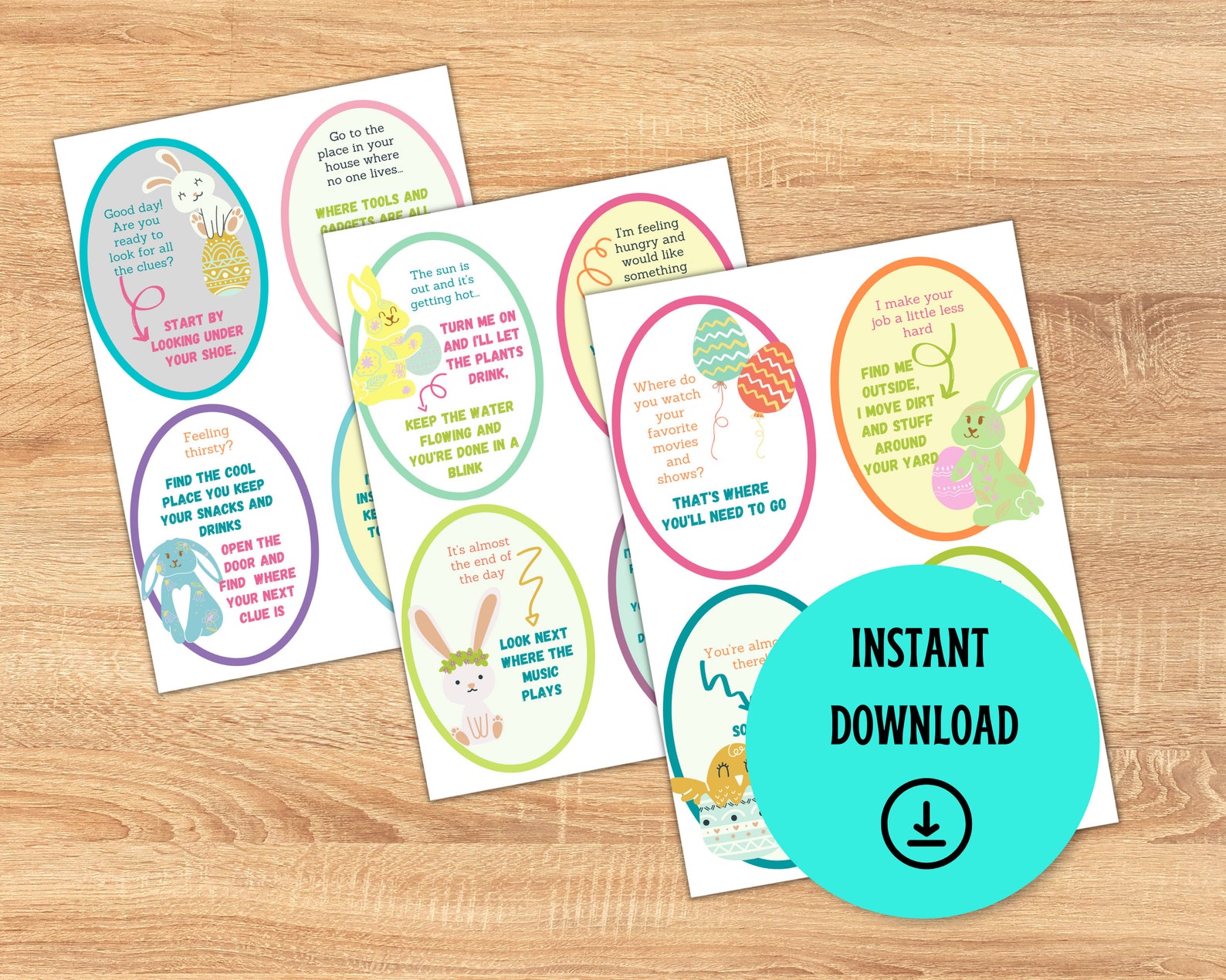 Printable Easter Scavenger Hunt Cards Easter Basket Clues for Kids and