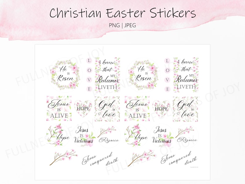 Printable Christian Easter Stickers He is Risen Stickers Cherry