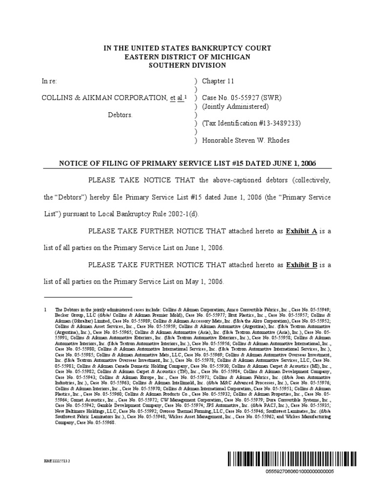 In The United States Bankruptcy Court Eastern District of Michigan