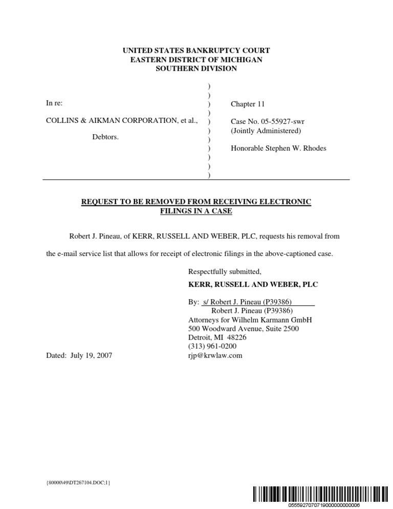 Fillable Online Michigan Eastern Bankruptcy Court PACER Fax Email