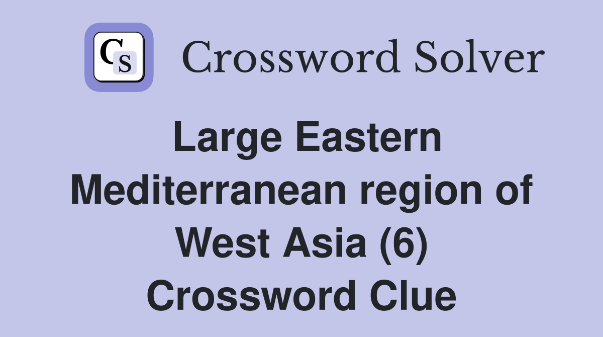 Large Eastern Mediterranean region of West Asia (6) Crossword Clue