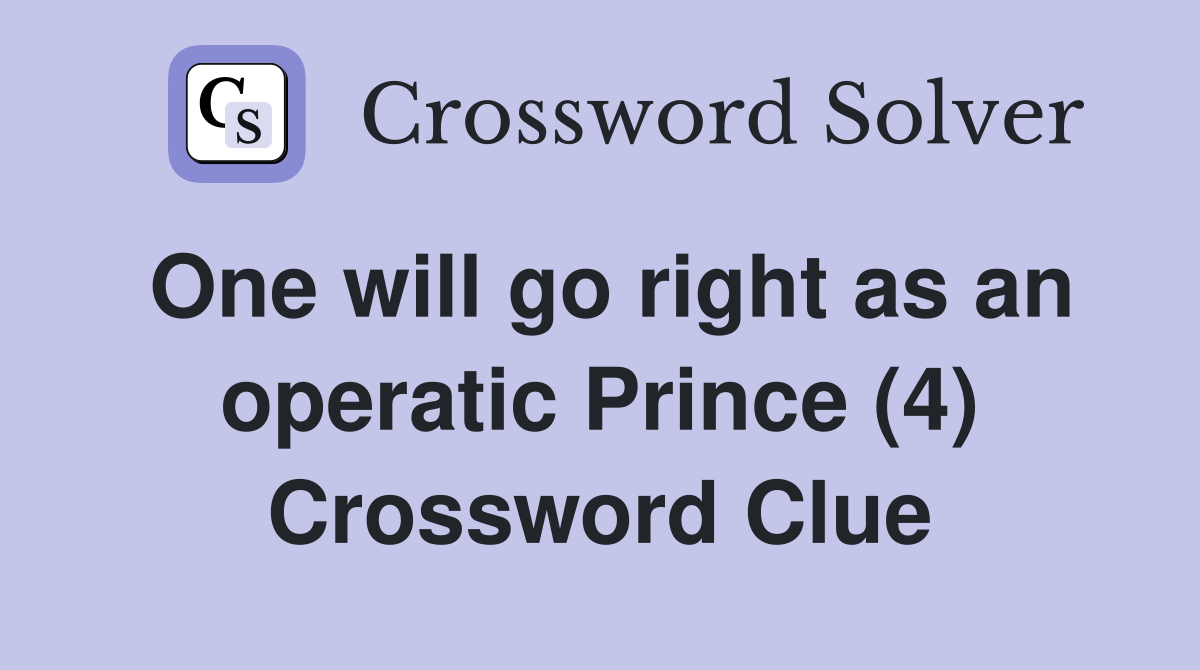 One will go right as an operatic Prince (4) Crossword Clue Answers