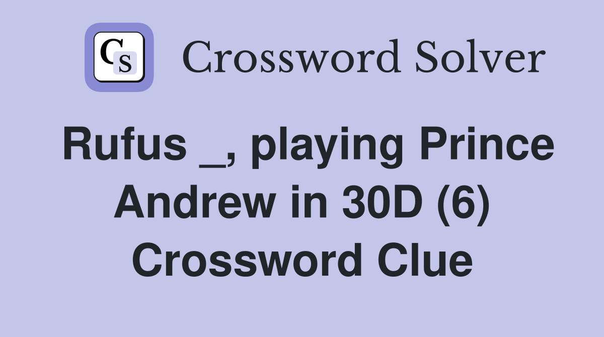 Rufus playing Prince Andrew in 30D (6) Crossword Clue Answers