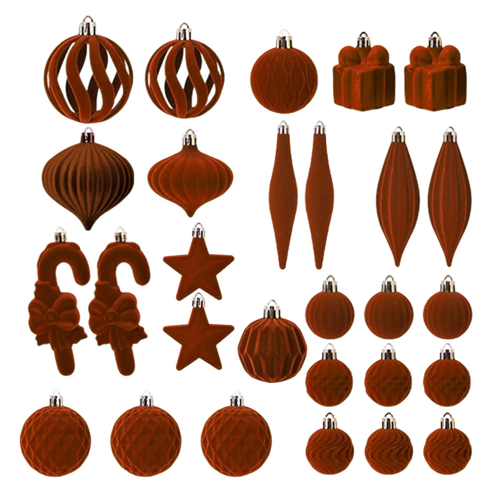 28 Pack Flocked Christmas Tree Ornaments Assorted Shapes Designs