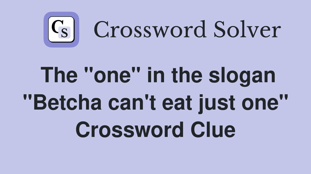 The quot one quot in the slogan quot Betcha can #39 t eat just one quot Crossword Clue
