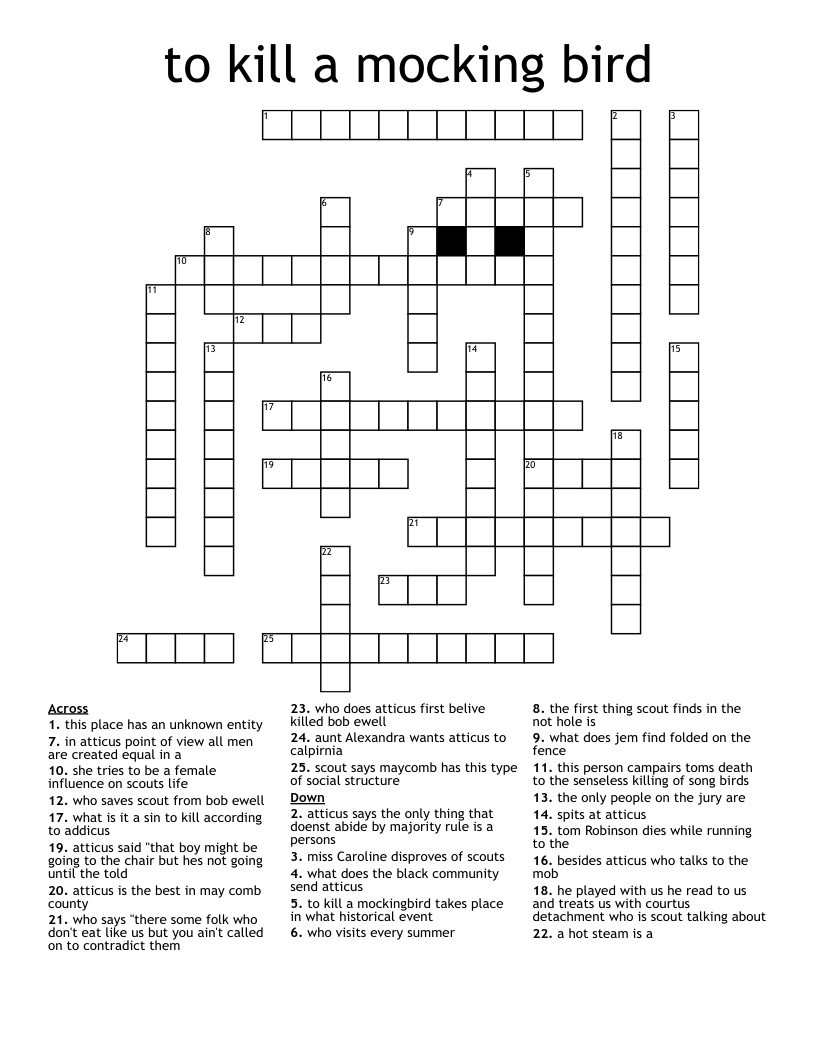 to kill a mocking bird Crossword WordMint