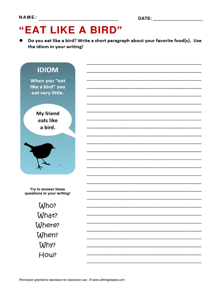 Eat Like Bird Idiom Writing Activity PDF Learning Communication