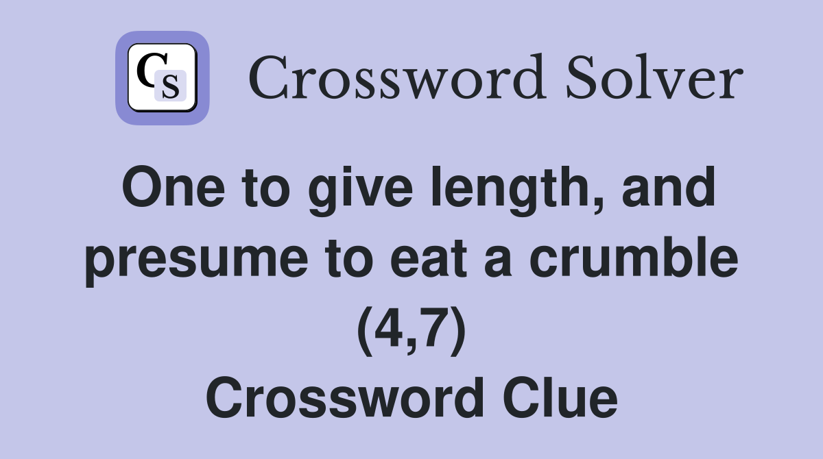 One to give length and presume to eat a crumble (4 7) Crossword Clue