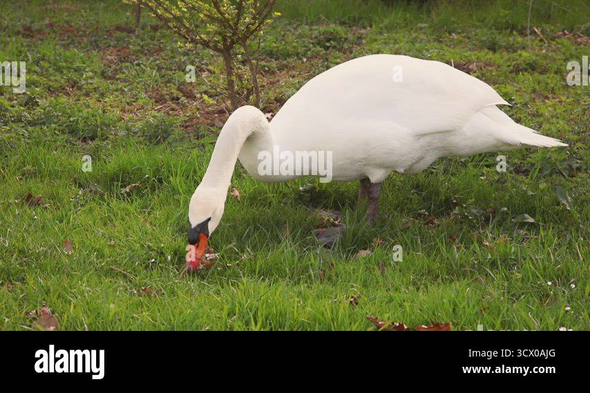 a beautiful big swan eats grass Stock Video Footage Alamy
