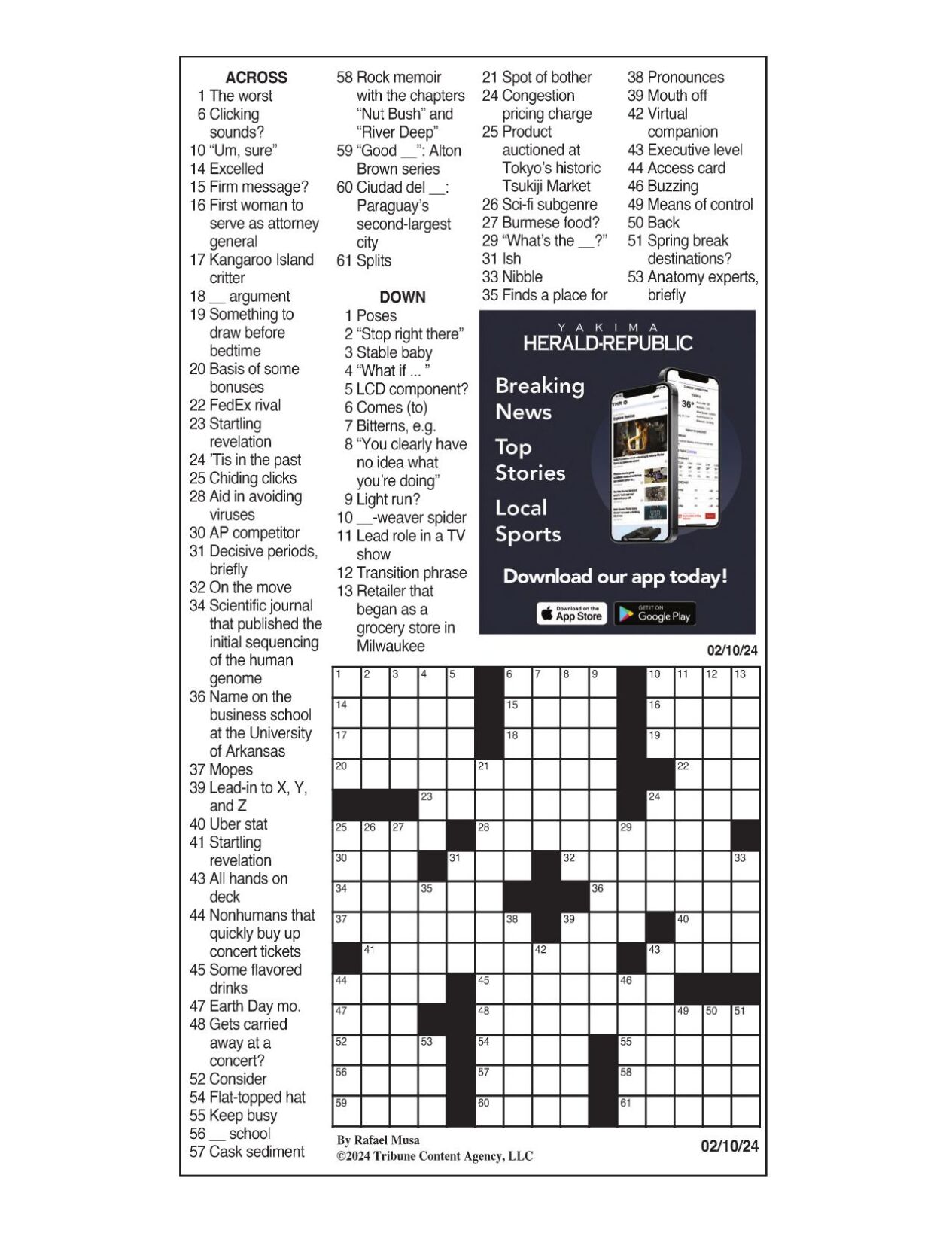 LA Times Crossword: Feb 10 2024 Crosswords yakimaherald com
