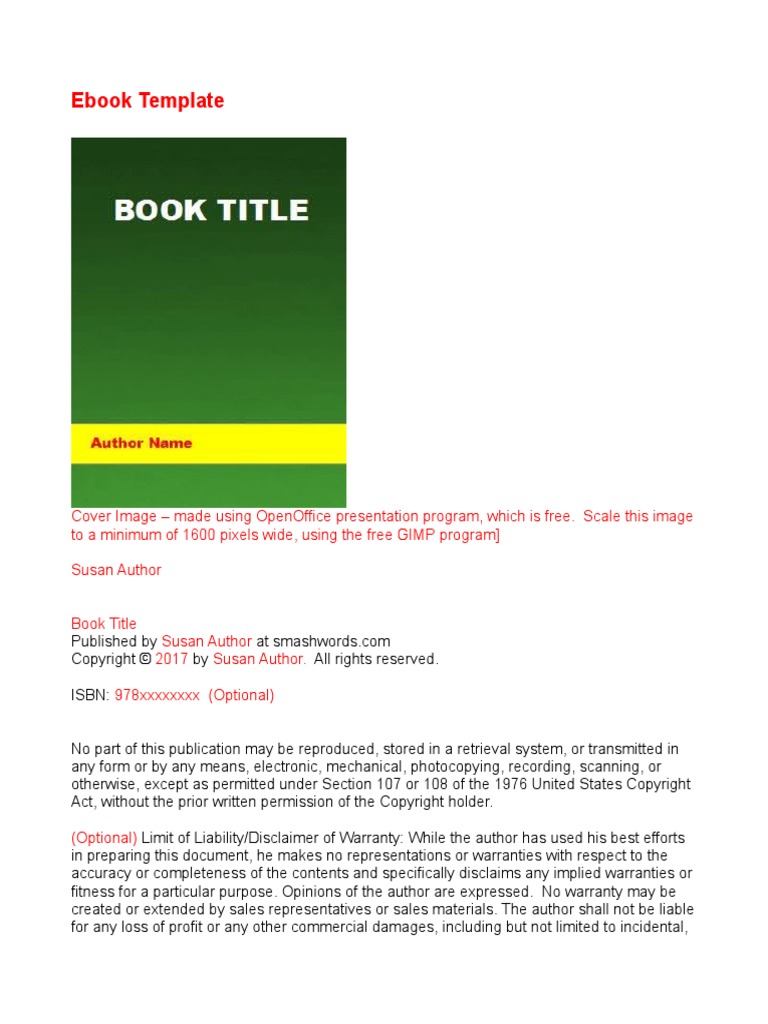 Ebook Template PDF Microsoft Word Copyright