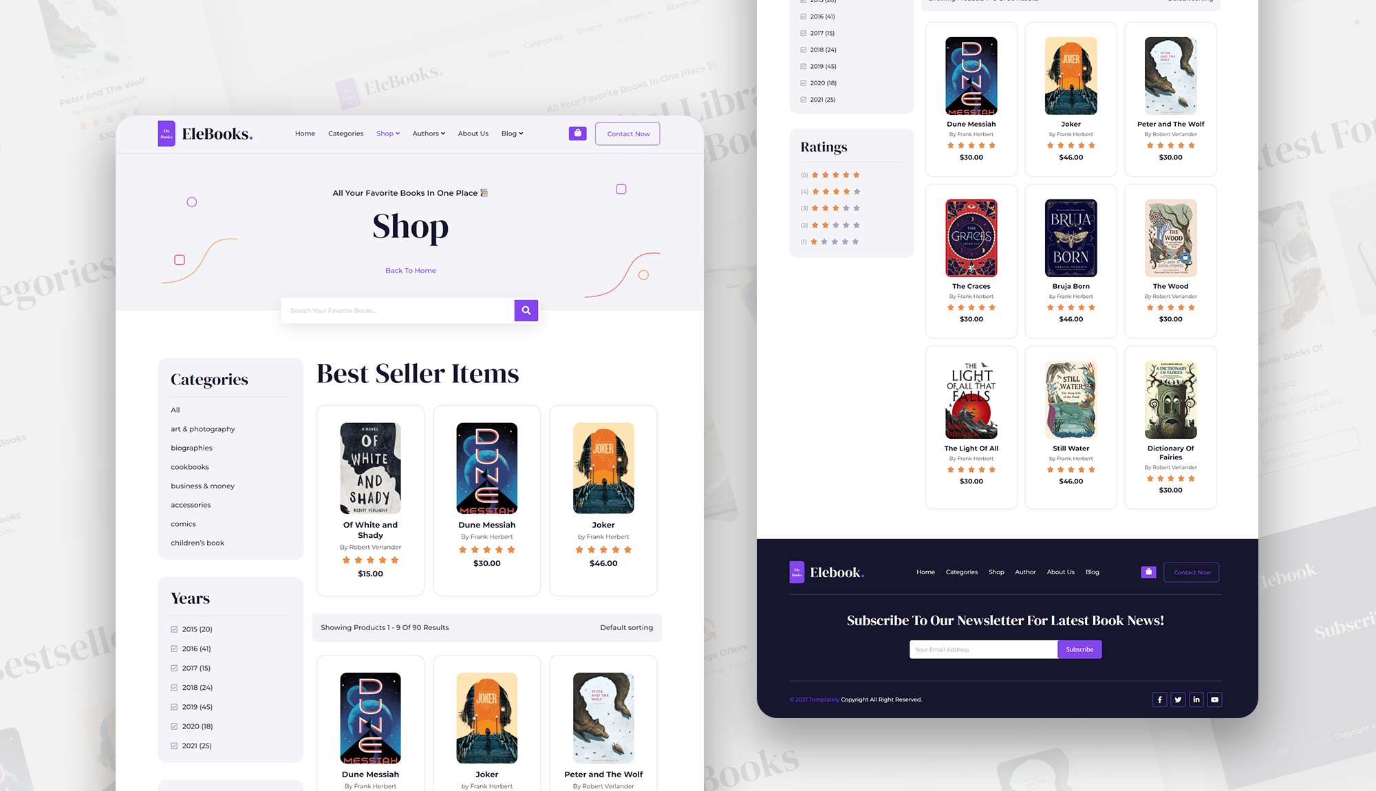 EleBook eBook Website Template Shop Page Templately