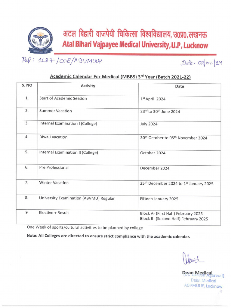 Mbbs 3rd Year Academic Calendar 2021 22 PDF