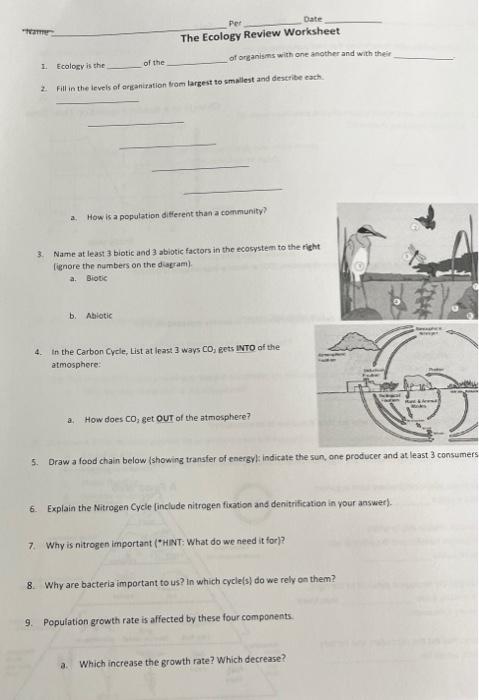 Per Date The Ecology Review Worksheet 1 Ecology is Chegg com