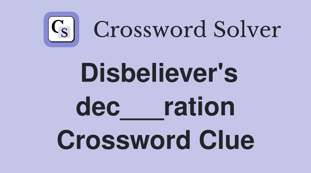 Disbeliever #39 s dec ration Crossword Clue Answers Crossword Solver