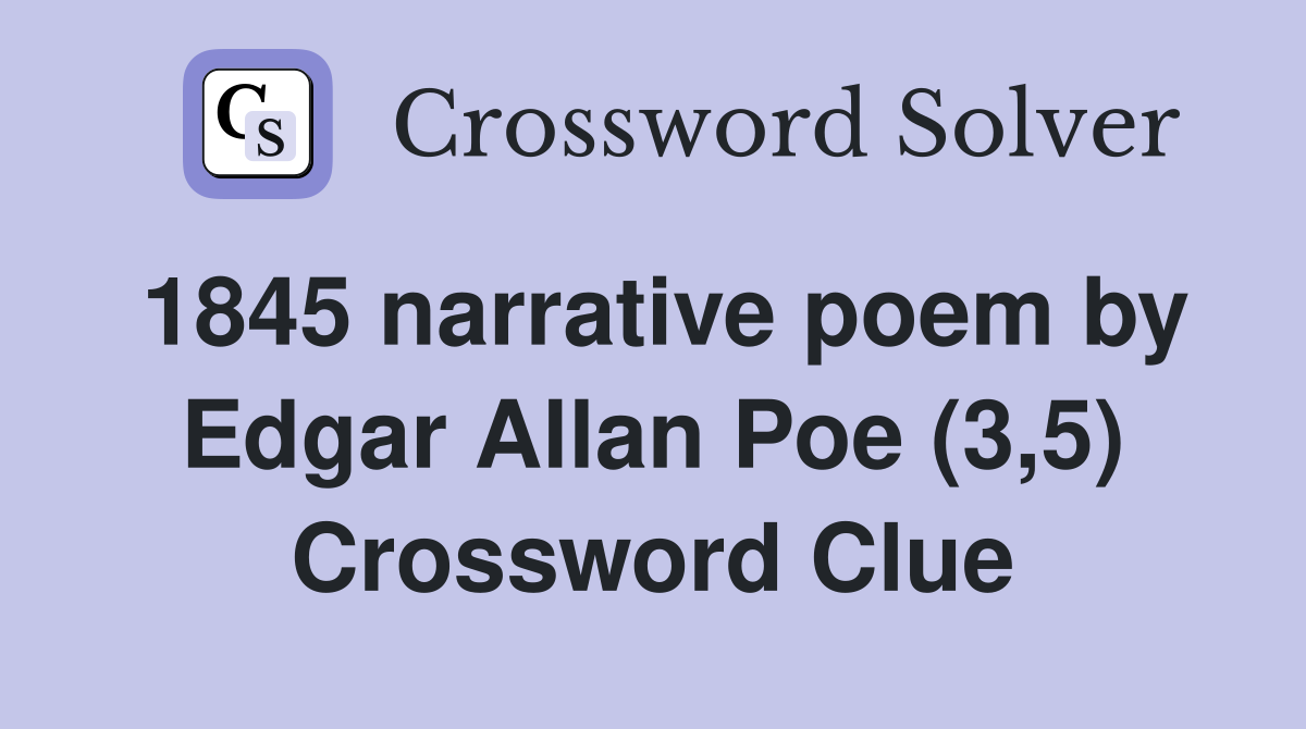 1845 narrative poem by Edgar Allan Poe (3 5) Crossword Clue Answers