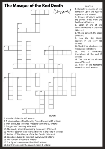 The Masque of the Red Death by Edgar Allan Poe Crossword Review