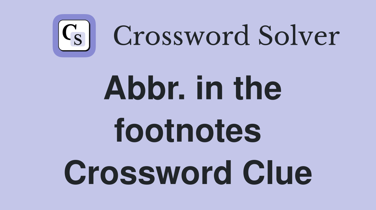 Abbr in the footnotes Crossword Clue Answers Crossword Solver