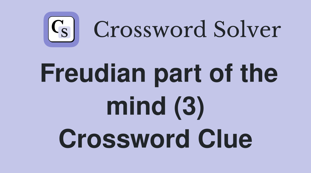 Freudian part of the mind (3) Crossword Clue Answers Crossword Solver