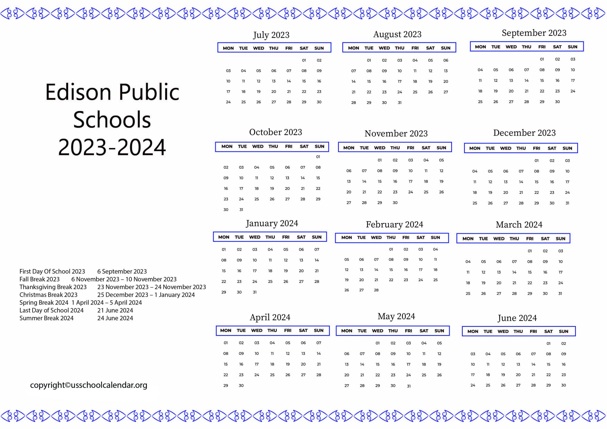 Edison Public Schools Calendar 2024 Schoolcalendars net