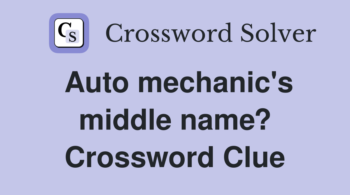 Auto mechanic #39 s middle name? Crossword Clue Answers Crossword Solver