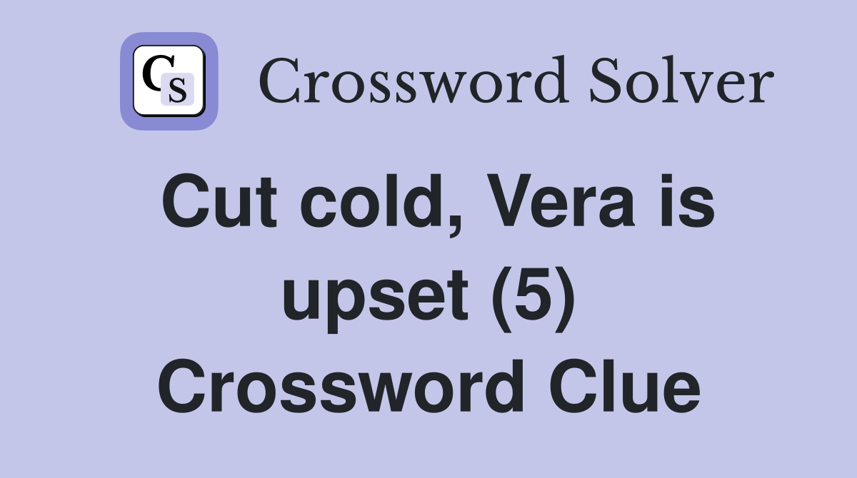 Cut cold Vera is upset (5) Crossword Clue Answers Crossword Solver