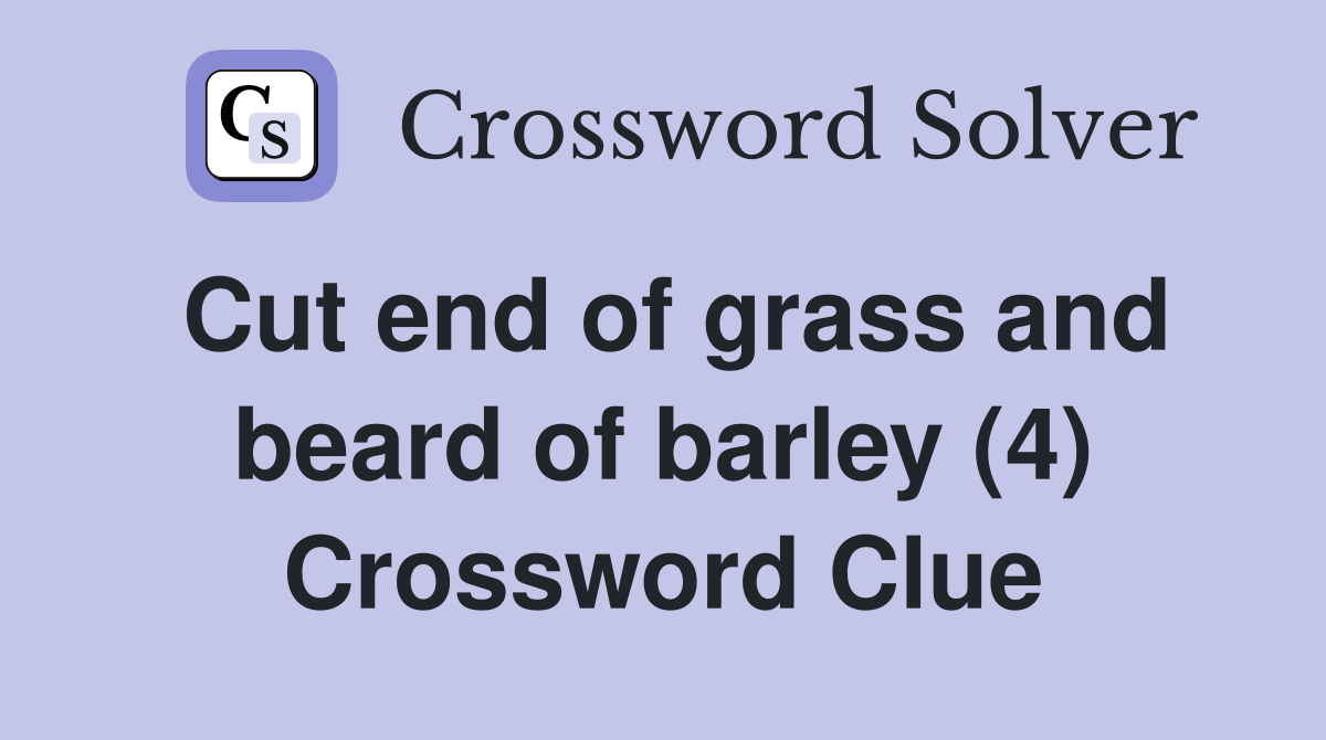 Cut end of grass and beard of barley (4) Crossword Clue Answers