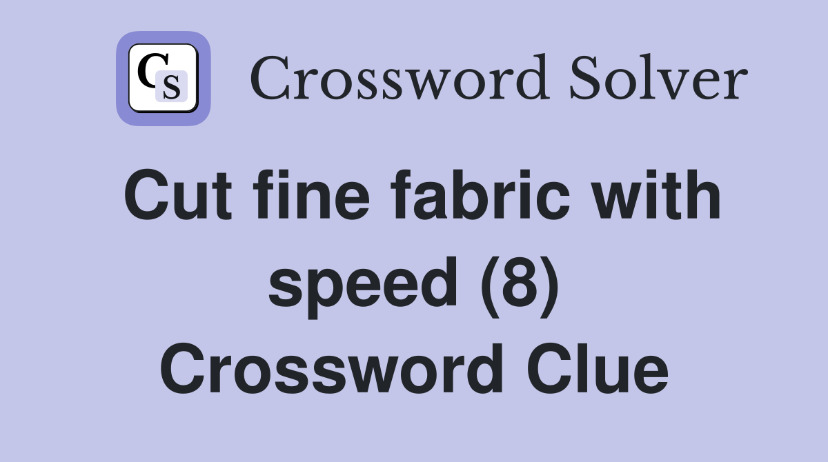 Cut fine fabric with speed (8) Crossword Clue Answers Crossword Solver