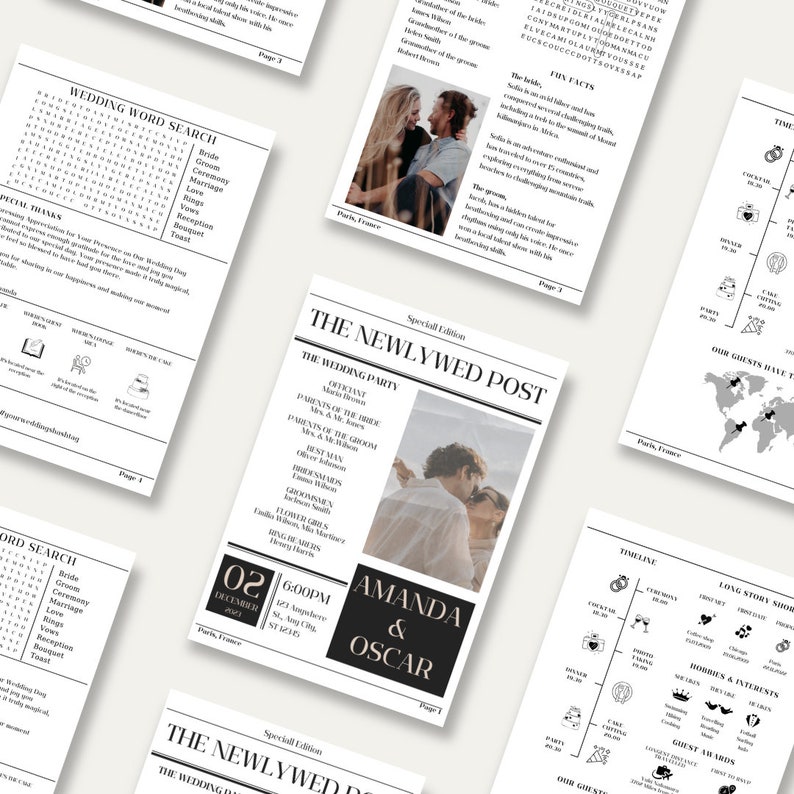 Editable Wedding Newspaper Program Newspaper Wedding Program Template