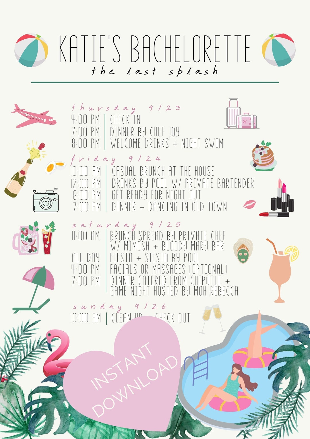 Editable Bachelorette Itinerary Template Last Splash Etsy Canada