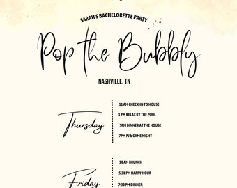 Editable Bachelorette Itinerary Template Bubbly Bachelorette Etsy