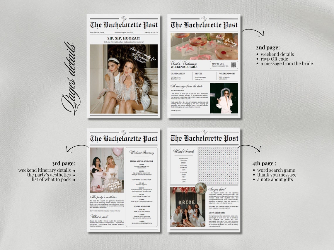 Editable Bachelorette Itinerary Newspaper Template Bachelorette Party