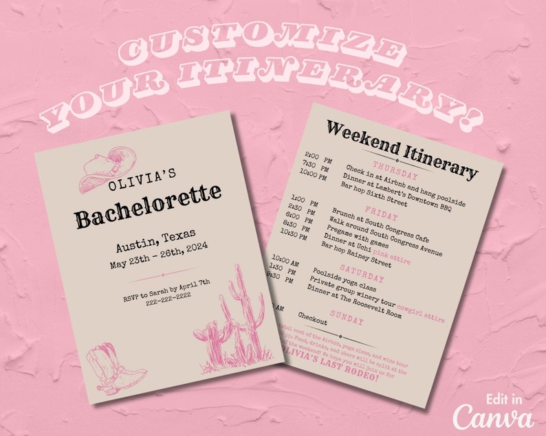 Editable bachelorette itinerary template weekend in the etsy Artofit